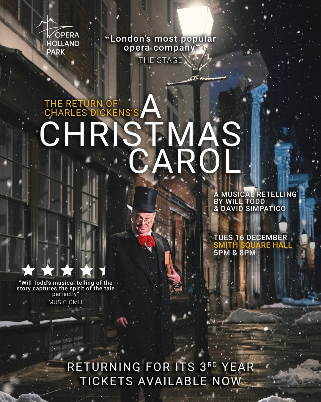 “If you are looking for something cosy and fun to do, last night I went to see Will Todd’s new opera of A Christmas Carol. It is just fantastic, beautifully staged, witty, just ingenious, absolutely wonderful…you must pounce on tickets.” – Alexander Armstrong on Classic FM