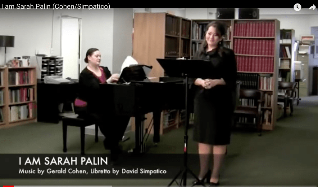 An aria written by composer Gerald Cohen and Librettist David Simpatico as part of the Composer Librettist Development Program at American Lyric Theater. Featured on January 30, 2011 as part of Freshly Brewed at OPERA America – Dramatizing History with Composer Anthony Davis Guest artists: Heather Johnson, Mezzo Soprano (Sarah Palin); Leesa Dahl, Piano. FOR MORE INFORMATION, PLEASE VISIT WWW.ALTNYC.ORG